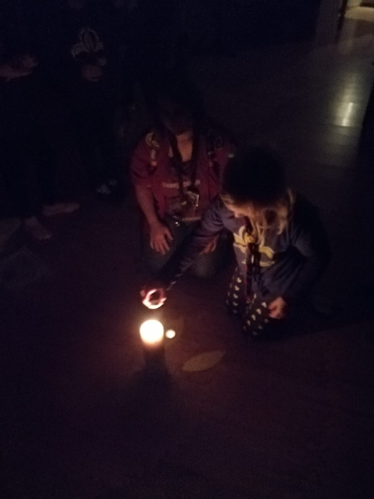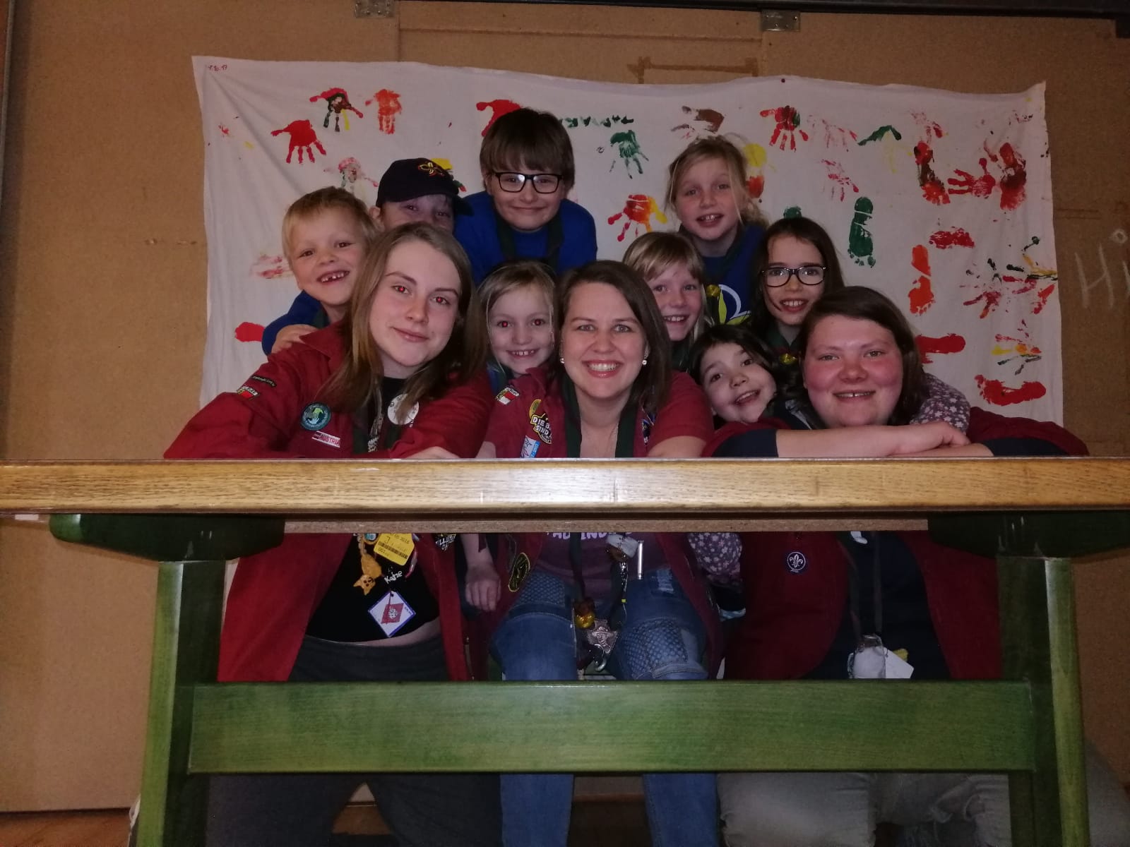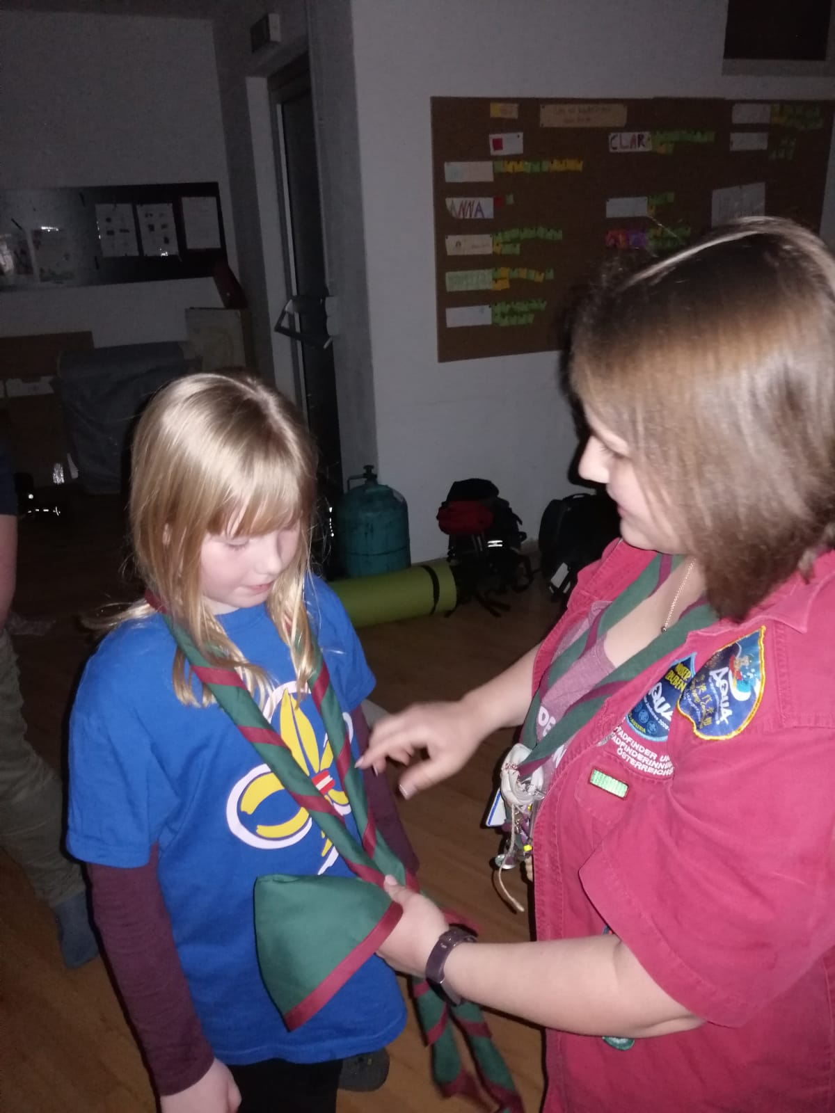 Nach dem leckeren Essen kam es zur Verleihung des Halstuchs. Das ist eins der wichtigsten Zeichen für die Pfadis. Da gibt es natürlich auch einen leckeren Kuchen zur Feier. Vor dem Schlafengehen sahen wir uns noch einen Film in unserem selbstgebauten Kino an.